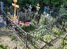 При работе над данным заказом нам предстояло полностью благоустроить могилу: изготовить памятник, уложить наземное покрытие и установить оградку. Приоритетом для клиента было качество работы, сочетающееся с разумной дешевизной. То есть мемориальный комплекс предстояло изготовить из гранита в строгих траурных тонах. Изначально на участке присутствовали лишь две таблички (с основной информацией о покойной и её фотографией) и металлическое ограждение.