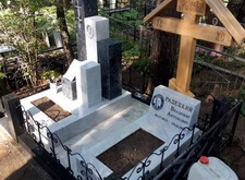 Так выглядело место захоронения на момент окончания работы: деревянный крест покрыт защитным раствором; мраморные изделия отшлифованы и покрыты гидрофобной субстанцией, стыки элементов промазаны белым герметиком; полые столбики, восстановлены; в цветнике заменена земля и посажен газон.